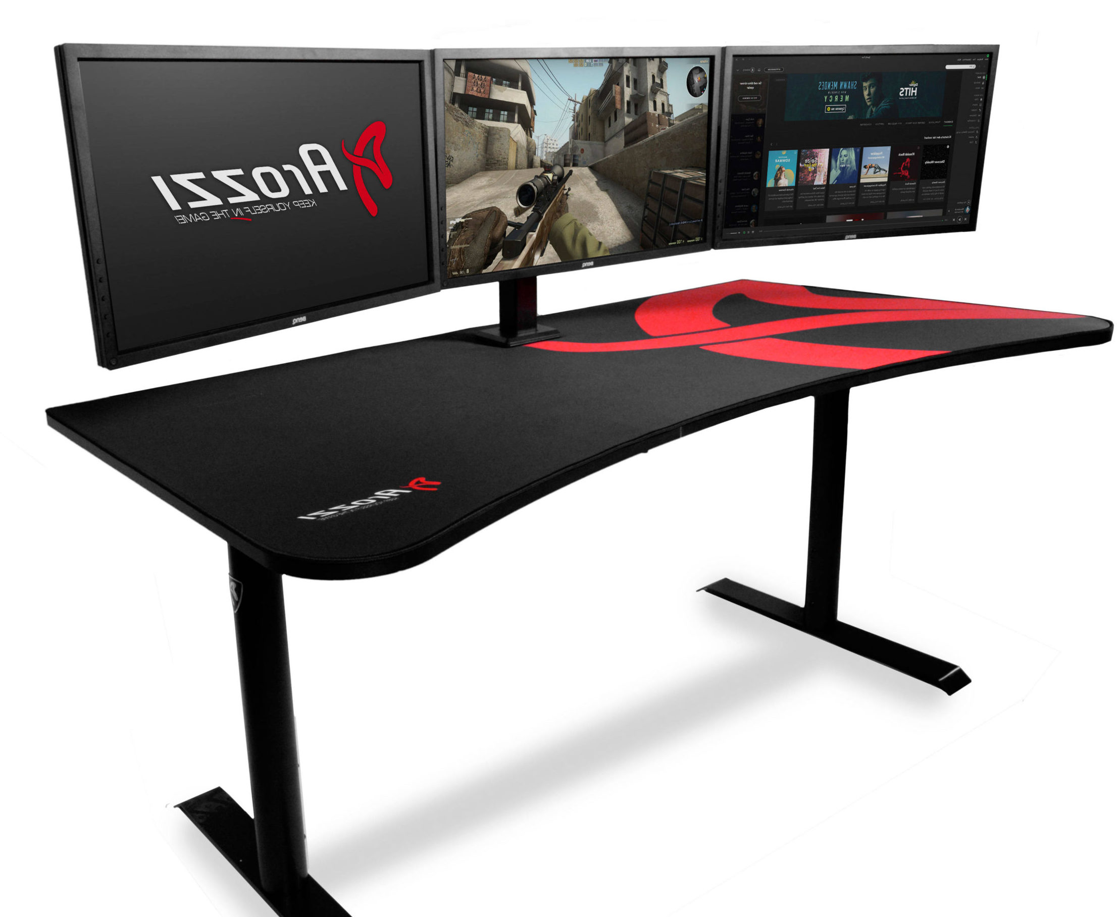 Ce modèle est également parfait pour les fans de jeux informatiques.La forme incurvée du dessus de table permet d'y placer facilement plusieurs grands écrans en même temps. Mais malgré cela, il y a suffisamment d'espace pour le clavier et les autres périphériques. Un revêtement spécial est appliqué sur la surface du plateau, qui le protège des liquides, et sert également d'excellent tapis de souris, ne nécessite pas de soins particuliers. Les fabricants ont prévu des trous spéciaux pour les fils, des pieds réglables en hauteur en métal durable.