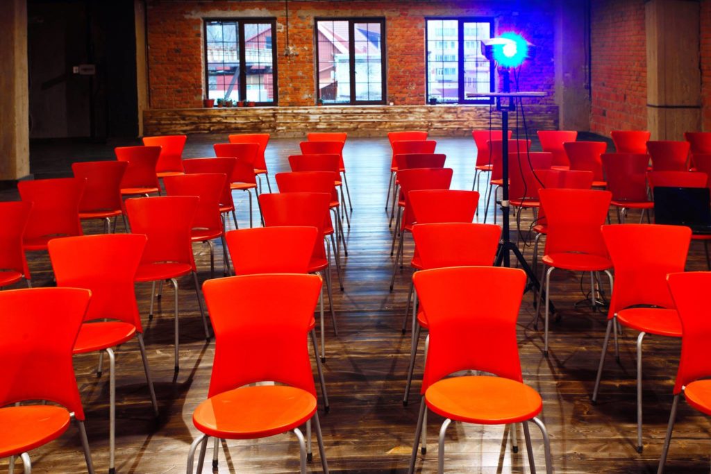 Lors du choix, il convient de garder à l'esprit que des sièges vides dans une salle trop spacieuse provoqueront un sentiment d'insécurité chez les intervenants. De plus, les organisateurs devront surpayer le loyer. Une pièce trop petite n'est pas non plus le meilleur choix. L'agitation avec la recherche de chaises supplémentaires, l'air vicié dans la salle "lubrifiera" les impressions positives même à partir de matériel utile et bien présenté par le conférencier.