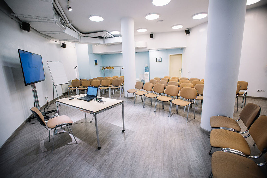Capacité - jusqu'à 200 personnes. Un lieu conçu de manière conceptuelle avec un équipement de haute qualité qui offre un son et une image de haute qualité. Mur interactif, 2 grands écrans pour la diffusion des présentations, disposition libre du mobilier. Une aire de loisirs est prévue. Le prix de la réservation comprend : l'utilisation des écrans, papeterie, paperboards et tableaux magnétiques. Eau potable en quantité illimitée.