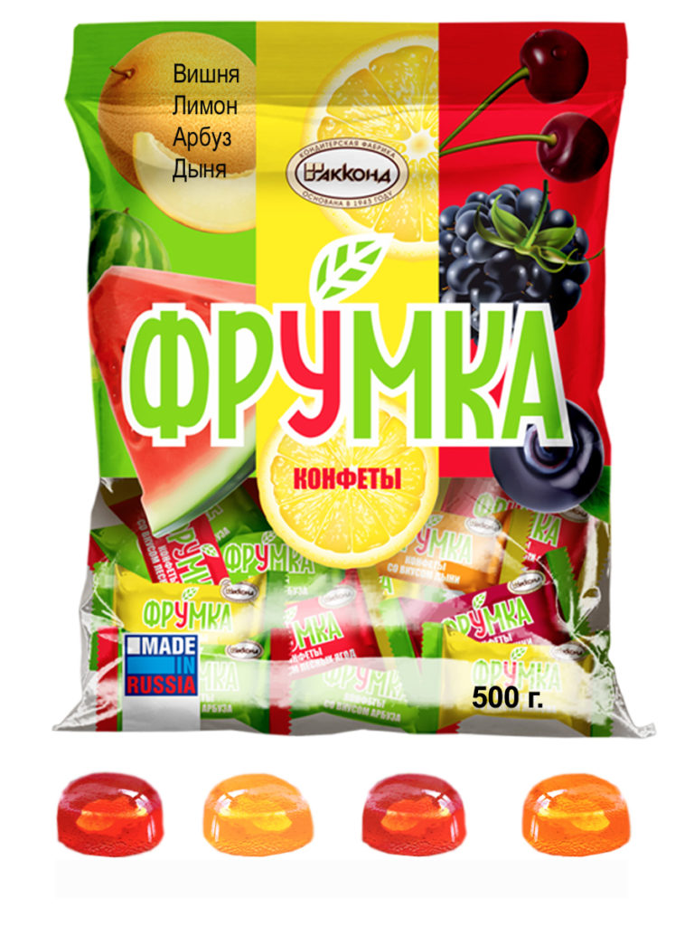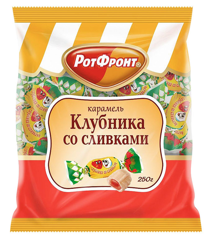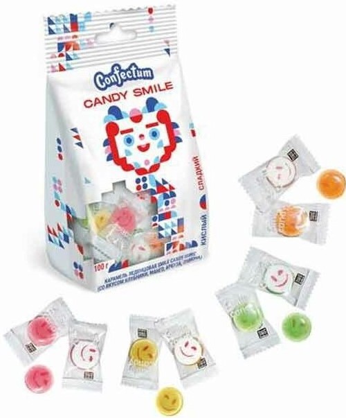 Caramel bonbon rond aux saveurs de fraise, mangue, pastèque, citron. Composé de 2 composants : caramel et bonbon en tablette sous forme de smiley.L'usine produit divers bonbons, dont du chocolat, tous les produits sont fabriqués à partir d'ingrédients naturels. Coût moyen : 262 roubles.