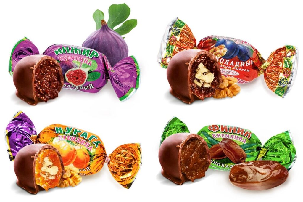 De grand volume, elle convient à une grande famille conviviale. À l'intérieur de l'emballage se trouvent des bonbons avec divers ingrédients, adaptés à toutes les occasions. Ingrédients : pruneaux, abricots secs, noix, figues, dattes. Tous les composants en glaçage au chocolat. Fabricant : KF Kremlin. Conditionnement : flow-pack.Prix moyen : 846 roubles.