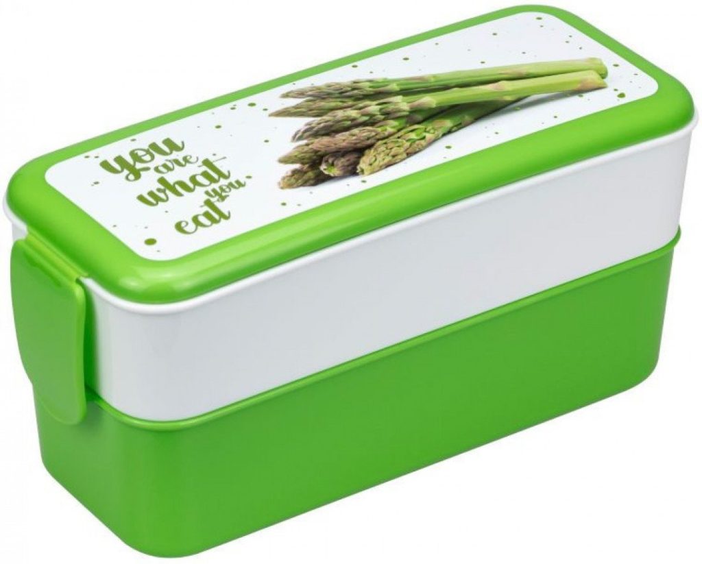 IDEA (M-Plastic) Boîte à lunch M 1233 (0,5+0,5 l), 8×20 cm, vert/blanc