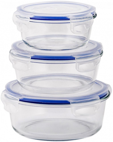 Le boîtier est en verre borosilicaté résistant à la chaleur, le couvercle est en polypropylène avec un joint en silicone. Il est écologique, n'absorbe pas les odeurs, ne tache pas. Les produits conservent longtemps leur fraîcheur et leurs propriétés utiles. Ensemble complet : 3 conteneurs. Prix moyen : 1090 roubles.