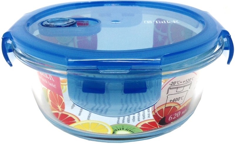 Le conteneur a un couvercle scellé avec quatre loquets et valves en haut, avec lesquels vous pouvez libérer l'air du conteneur et le sceller. Peut être utilisé comme plat de cuisson. Il est permis de conserver longtemps au réfrigérateur et au congélateur. Prix : 357 roubles.