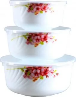 Un ensemble de conteneurs décorés de couleurs vives plaira à toute hôtesse. Il peut être posé sur la table des fêtes. La capacité optimale de 0,4, 0,8 et 1,4 litres vous permet de mettre une grande quantité de nourriture à l'intérieur. Prix moyen : 756 roubles.