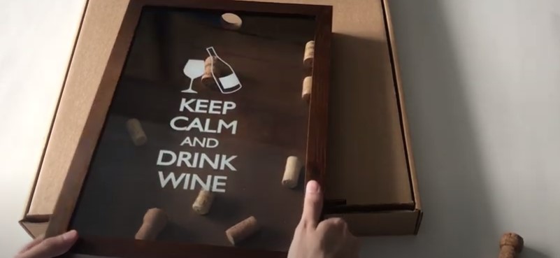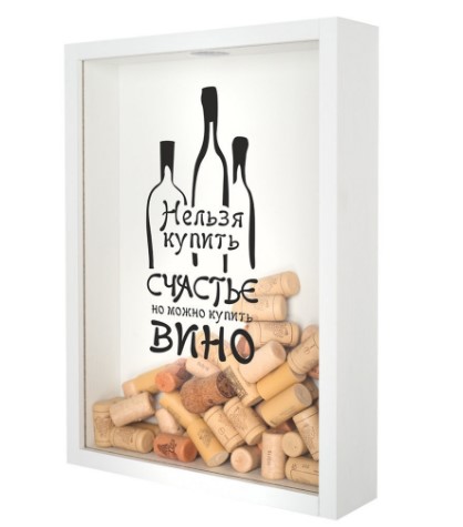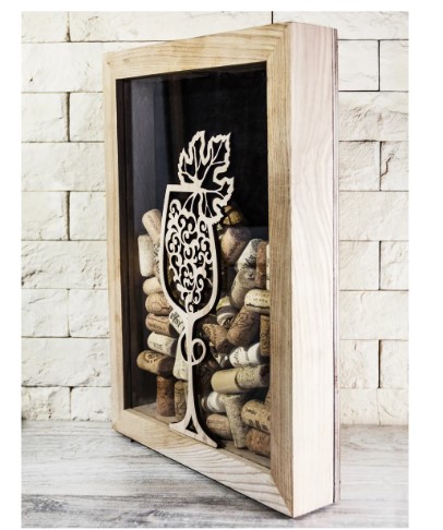 Le modèle en bois de fabrication russe est fabriqué sous la forme de cadre traditionnel. Le cadre est en bois massif, la paroi arrière est en contreplaqué, le panneau avant est en verre résistant aux chocs. L'élément décoratif du produit est une application en relief représentant un verre de vin avec une feuille de vigne, qui ajoute sophistication et charme. Le bois naturel permettra à la tirelire de s'intégrer de manière organique dans n'importe quel design d'intérieur et de décorer la cuisine, le bureau ou le salon. Il est vendu dans les magasins en ligne au prix de 4850 roubles, lors des promotions, le coût est inférieur. Les acheteurs notent l'emballage de qualité, grâce auquel le produit a l'air présentable et peut servir de cadeau agréable pour un connaisseur de bonnes boissons ou un collectionneur de bouchons de vin. Un grand nombre d'entre eux conviennent, car les dimensions du produit sont impressionnantes - 30 * 40 * 7 cm.