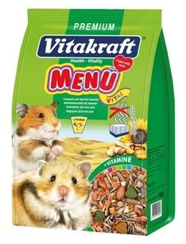 Il n'est pas nécessaire d'acheter des suppléments supplémentaires pour que ces aliments maintiennent l'immunité, il suffit simplement de chouchouter occasionnellement votre animal avec des légumes et des fruits frais. La norme pour les hamsters adultes est de 20 grammes par jour. Le prix moyen d'un tel aliment est de 400 à 500 roubles.