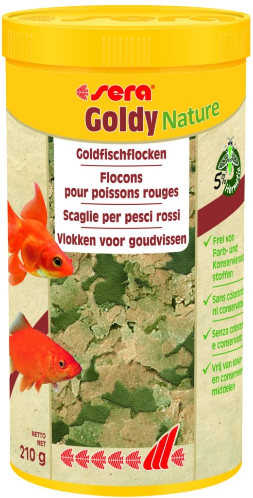 Flocons destinés à l'alimentation des poissons rouges. La composition est riche en composants protéiques et végétaux, ce qui est particulièrement nécessaire pour ces races. Le fabricant fabrique des produits dans de petits emballages et de grands seaux.