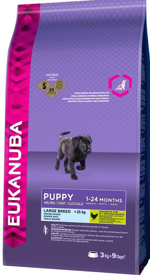 La nourriture est destinée aux chiots de toutes races. Contient dans sa composition des ingrédients naturels et augmente l'activité de l'animal. Les granulés sont petits et n'endommagent pas la cavité buccale. Ils sont rapidement absorbés et contiennent des prébiotiques nécessaires à une digestion normale. Les utilisateurs notent qu'avec l'utilisation régulière de nourriture sèche chez les animaux de compagnie, l'état du pelage s'améliore.