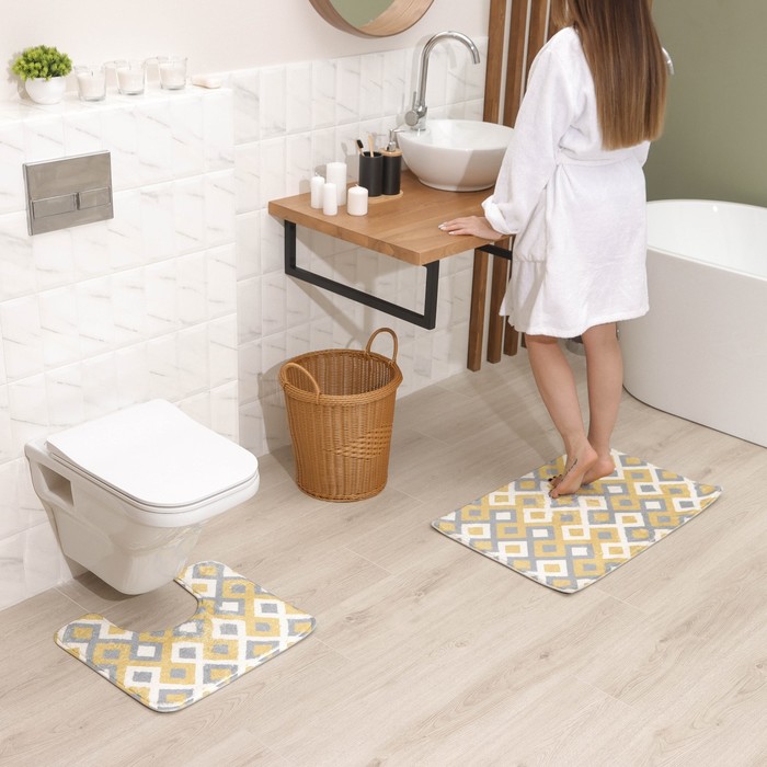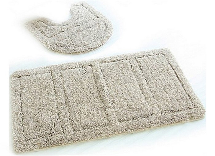 Un bon ensemble pour un agencement cosy de la salle de bain. Le matériau ne glisse pas sur le sol, les coins ne se gonflent pas, il est facile à utiliser. Il peut être utilisé aussi bien dans la salle de bain que dans une autre pièce. Le design est polyvalent et s'adaptera n'importe où. Composition : 100 % polyester. Poids : 0,4 kg. Prix : 930 roubles.