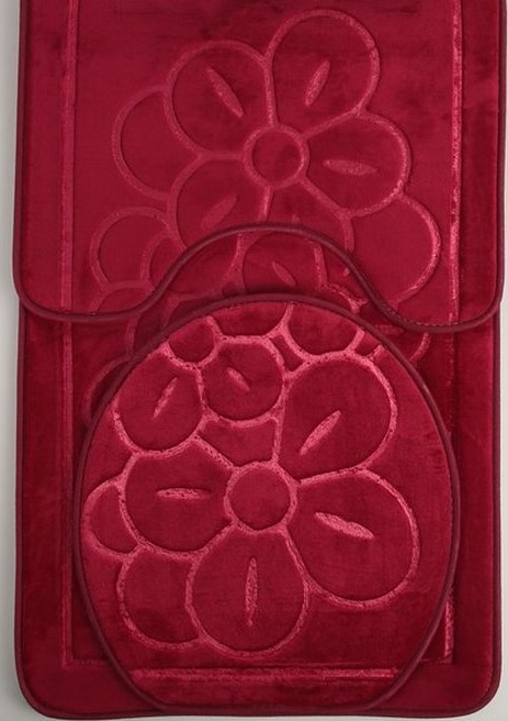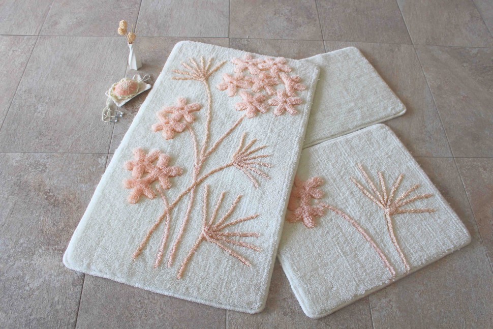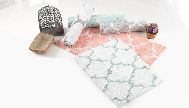 Des accessoires agréables au toucher assurent un maintien confortable des pieds au sol.Si la baignoire et les toilettes sont combinées, des tapis peuvent être placés près de toute la plomberie. Le tissu sèche rapidement, ne s'étire pas, conserve longtemps la luminosité de la couleur. Il n'est pas recommandé de laver en machine et de sécher sur piles. Le poids; 1,1 kg. Pays d'origine : Inde. Composition : 100% coton. Coût : 3562 roubles.