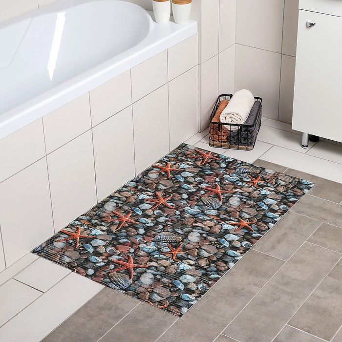 La base en latex et 100% polyester garantissent une durabilité et un confort de port élevé. Le velours doux enveloppe agréablement les jambes après avoir pris un bain, absorbe l'humidité, ne glisse pas à la surface. Pays d'origine : Chine. Coût moyen : 3773 roubles.