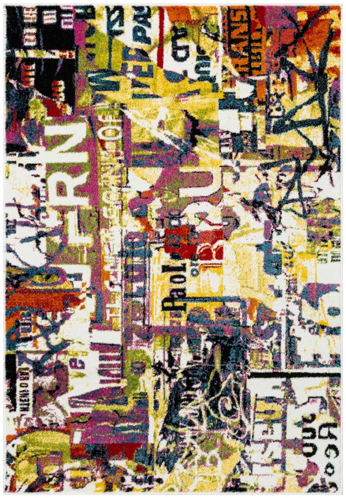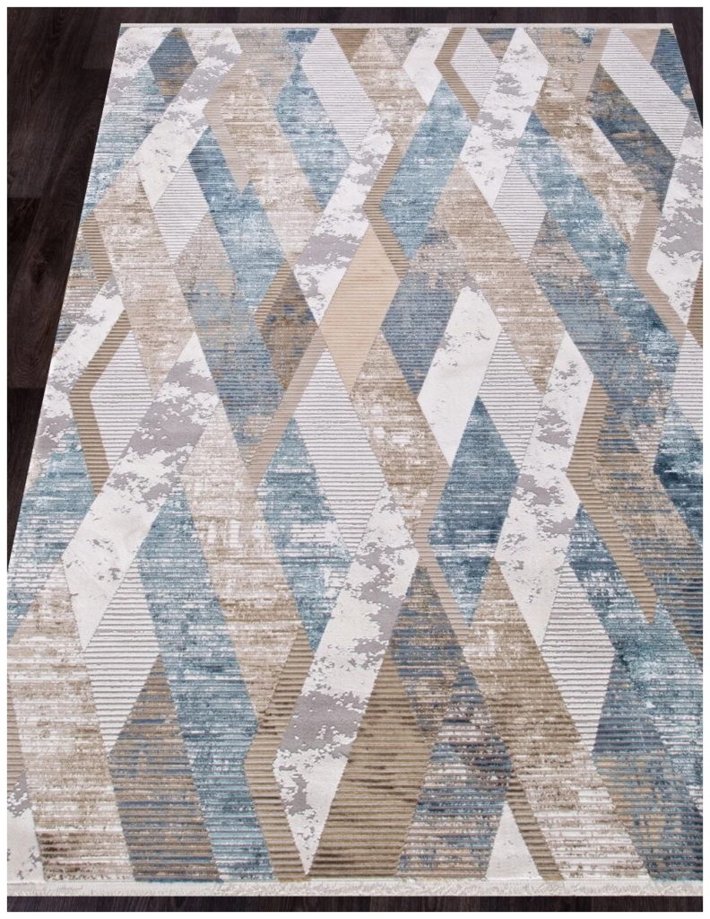 Tapis moderne de la société Merino, un fabricant russe.Le design et les couleurs conviennent à la décoration de n'importe quelle pièce. Le matériau principal est le polypropylène et le jute. La forme du tapis en forme de rectangle, le motif est lumineux, abstrait. Coût - 1800 roubles