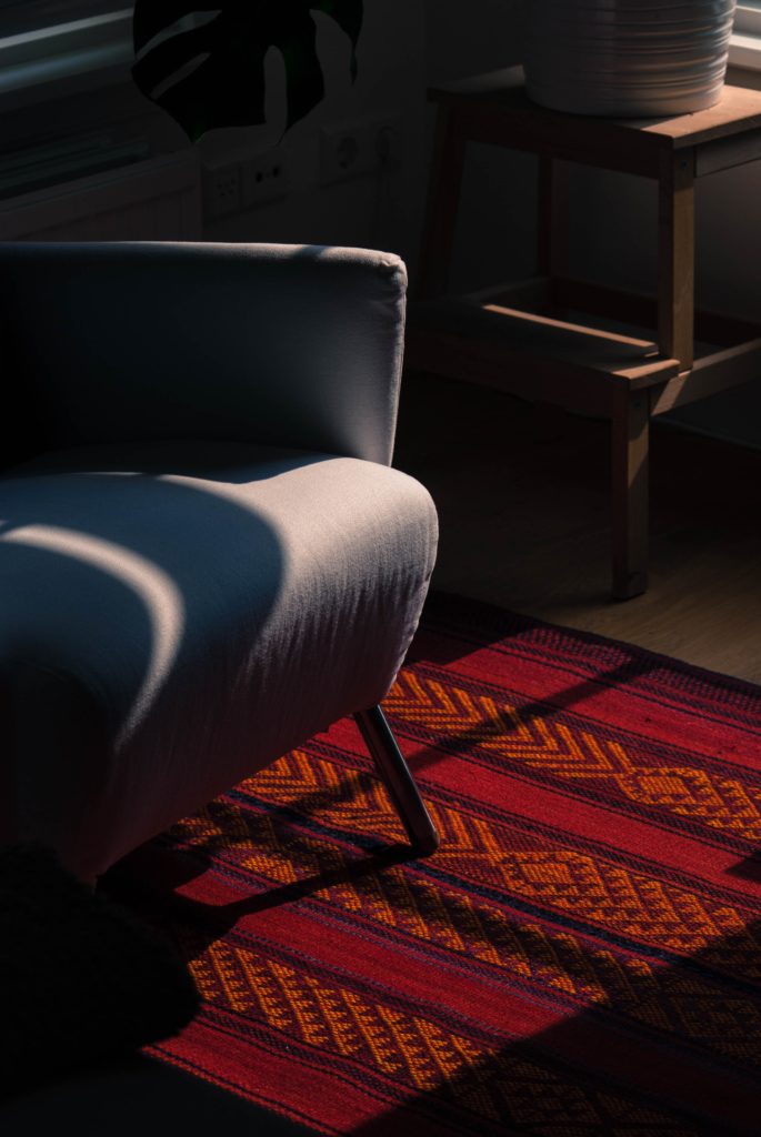 Pour le salon, il est conseillé de choisir un tapis à poils moyens ou petits. Une combinaison de la même couleur de tapis et de revêtement de sol semble harmonieuse. Mais si le sol est sombre, le contraste avec le blanc sera approprié. Dans une pièce lumineuse, mieux vaut poser un tapis de teintes froides, et les tons chauds rafraîchiront la sombre.