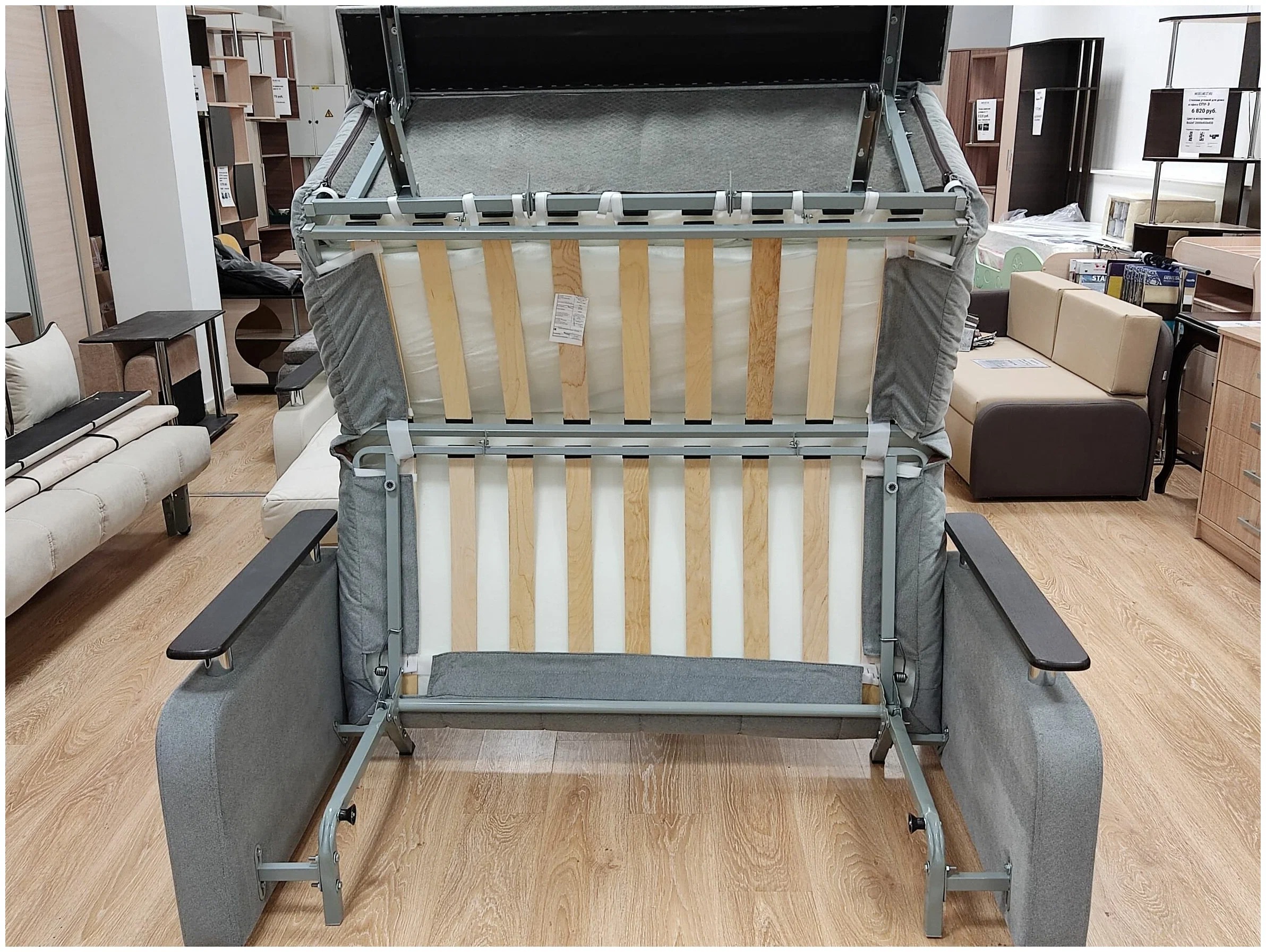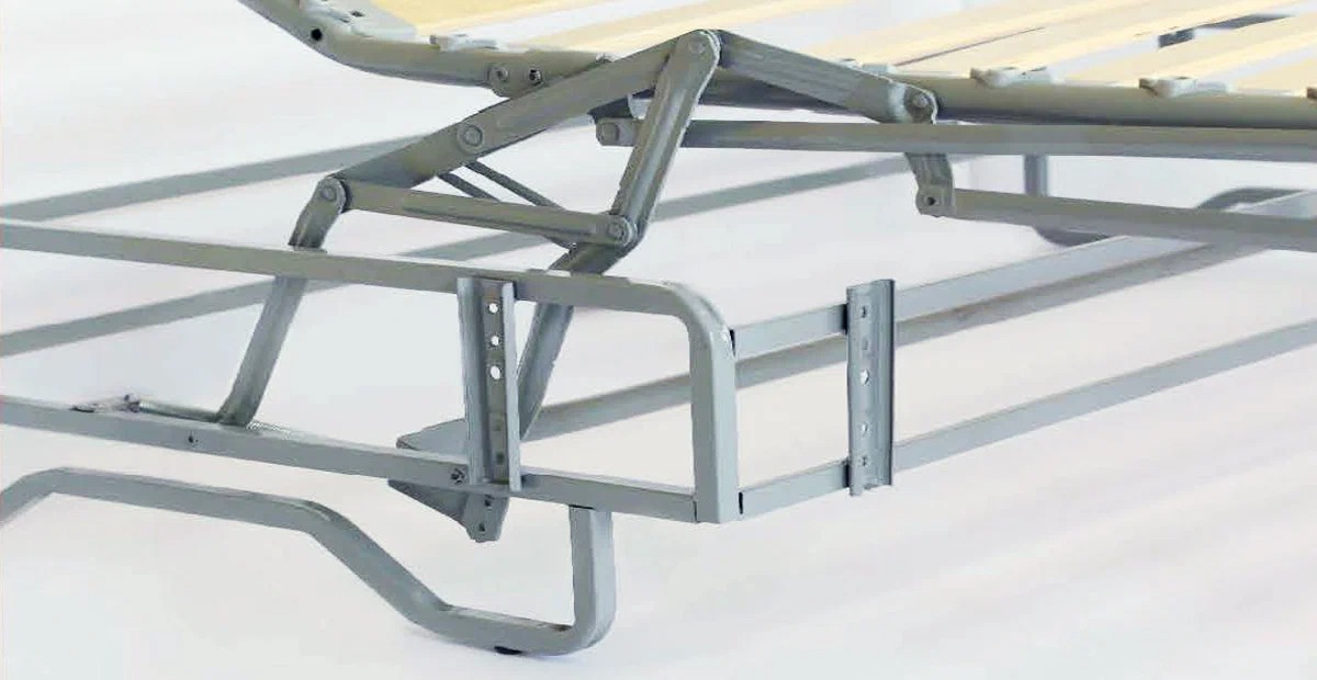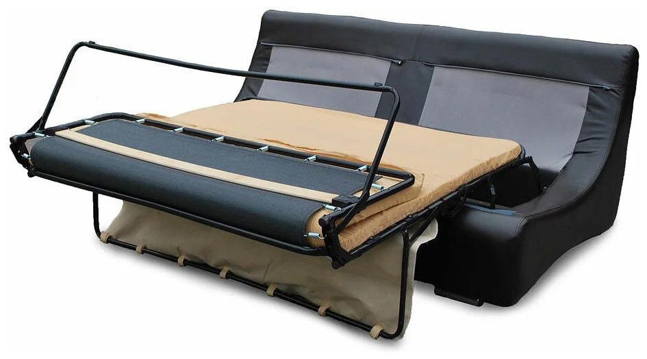- Dépliant français. La conception est divisée en plusieurs sections cachées à l'intérieur, le lit est avancé et fixé avec des pieds. Un système similaire se trouve dans le clapet américain et belge ou sedaflex comme sur la photo présentée.