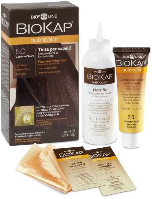 BioKap Nutricolor Delicato est une gamme encore plus douce à base de protéines de céréales et d'acides gras de fruits. Comme l'option précédente, celle-ci garantit un résultat durable même sur les cheveux gris. Dans la palette, toujours les mêmes nuances naturelles. L'ensemble est le même.