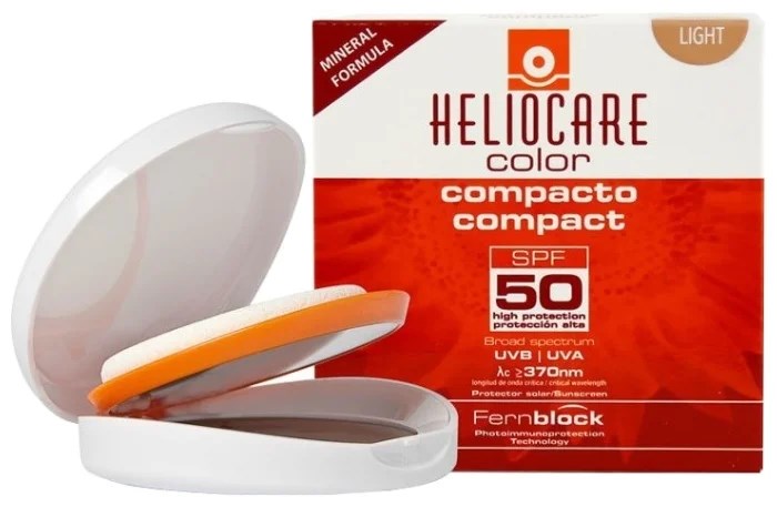 Très intéressant dans ses propriétés et sa composition est un produit de la société espagnole HELIOCARE, dont la principale spécialité est les écrans solaires. On note tout de suite que cette poudre crème a un indice de protection solaire de 50. Cela en fait une excellente alternative aux crèmes solaires grasses. Il protège non seulement contre les rayons UV, mais uniformise également le ton, masque les imperfections. Dans le même temps, la peau ne sera pas surchargée de couches supplémentaires de crèmes. Tout cela est possible grâce aux filtres solaires physiques, chimiques et, développés par l'entreprise, biologiques. De plus, la composition est riche en composants responsables de la protection antioxydante, préservant la structure et l'ADN. En tant que fond de teint, la crème-poudre espagnole fait face à la tâche dans toute sa mesure: elle unifie le teint, masque les imperfections. Les utilisateurs notent la facilité de distribution et une finition éclatante. Disponible pour les peaux grasses (Compact SPF50 Oil-Free) et sèches (Compact SPF50 Mineral Formula).
