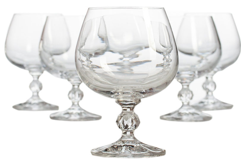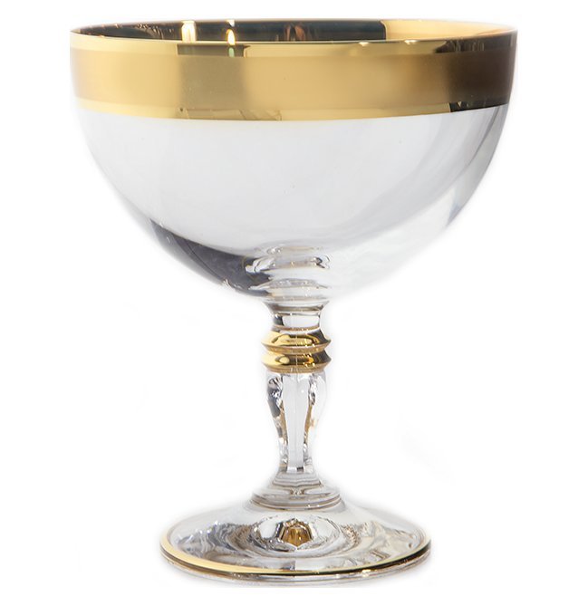 Les tasses de la société tchèque Union Glass sont en verre tchèque (de Bohême). L'ensemble comprend 6 récipients en verre transparent, l'or mat est utilisé pour le design.La qualité du matériau, qui est durable, ainsi que le design exquis, rendent les plats populaires parmi les utilisateurs, malgré le prix. Il est facile d'entretenir la vaisselle, mais les fabricants ne recommandent pas de la laver au lave-vaisselle.