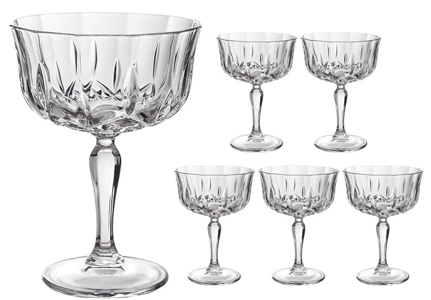 "Claudia", un ensemble d'un fabricant tchèque, qui comprend 6 articles en verre de cristal. Ce matériau ne contient pas de plomb et est sans danger pour la santé, ainsi que solide et durable. Le verre cristal crée un jeu de lumière parfait et ne perd pas son éclat avec le temps. La forme large du récipient convient pour servir à la fois des collations légères, des desserts et des boissons telles que des vins mousseux.Le design moderne et concis attire l'attention de nombreux acheteurs. L'ensemble convient aussi bien à un usage quotidien qu'au service d'une table de fête. Les conteneurs sont emballés dans une boîte soignée, ils peuvent donc être présentés comme un cadeau.