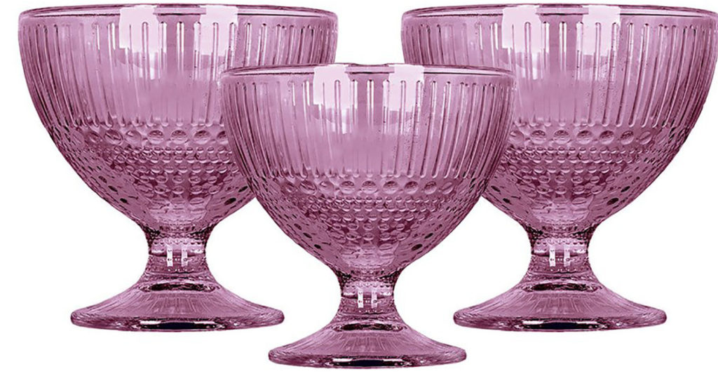 Un autre ensemble de la célèbre marque française LUMINARC, Louison Lilac comprend 3 bols, qui sont emballés dans une jolie boîte colorée. Les produits sont fabriqués en verre résistant aux chocs et recouverts d'un revêtement spécial qui protège contre les rayures et l'exposition aux températures.La combinaison de tels matériaux augmente la durée de vie tout en maintenant une apparence présentable des modèles. La vaisselle peut être lavée au lave-vaisselle et même utilisée au micro-ondes. Le verre utilisé dans la production n'absorbe pas les odeurs pendant le fonctionnement et ne ternit pas. Et le design élégant inhabituel rend les produits adaptés à presque toutes les célébrations.