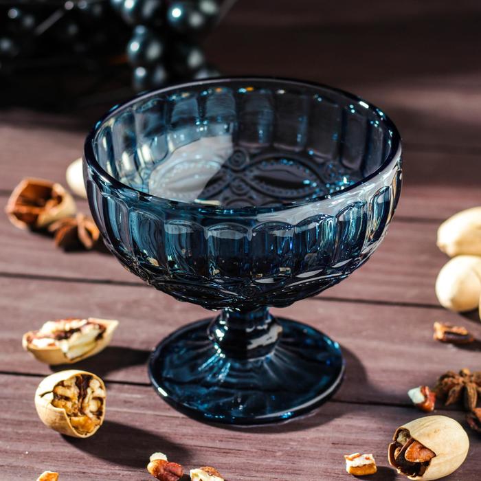 Magistro "La Manche" est en verre bleu durable. Un récipient de belle forme avec des parois en relief, placé sur une jambe confortable, sur un support, a une couleur riche. La longueur de la jambe permet, si nécessaire, de placer commodément l'objet dans la main. Les plats sont adaptés pour servir des desserts et diverses salades. Durable et résistant aux contraintes mécaniques, le produit peut être lavé au lave-vaisselle.