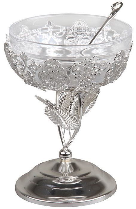 Les conteneurs Rosenberg RNA-060234 de la marque allemande sont fabriqués en Chine. Le bol du produit est en verre, son pied est en alliage métallique avec un revêtement en nickel-argent, l'ensemble comprend également une cuillère en métal pour le dessert. Un modèle durable et élégant décorera non seulement n'importe quelle table de vacances, mais aussi un cadeau exquis. Il convient également de noter que le matériau utilisé dans la production est résistant aux dommages mécaniques, mais il n'est pas recommandé de laver la vaisselle au lave-vaisselle.