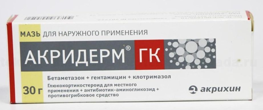 Sous la gamme Akriderm, les sociétés pharmaceutiques produisent d'autres médicaments. Leurs noms diffèrent légèrement. Et en plus de la bétaméthasone, la composition comprend des composants supplémentaires sous forme de gentamicine, d'acide salicylique et de clotrimazole. Il est important d'être prudent lors de l'achat de pommade.