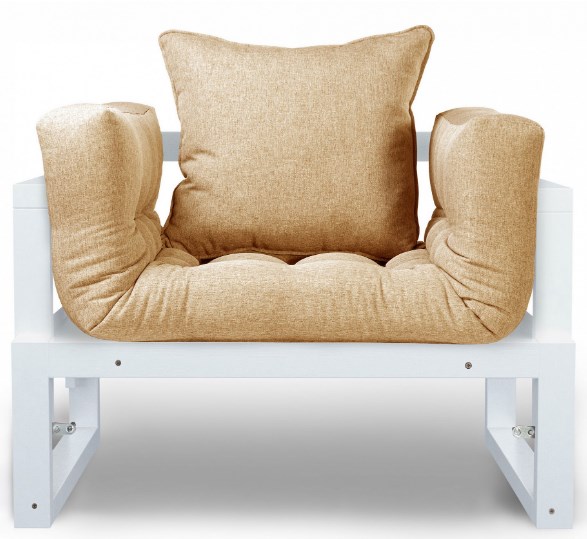 Facilement et sans effort, il se transforme en un lit confortable 80x200cm. De larges accoudoirs avec doublure en bois peuvent servir de sous-verres. Livré avec un oreiller de la même couleur.