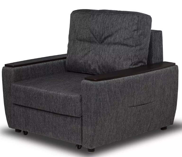 Le fauteuil-lit d'aspect classique du fabricant russe Sharm-Design s'intègre parfaitement à l'intérieur d'un bureau d'affaires et d'une chambre à coucher. Ce modèle diffère de ceux discutés ci-dessus par le matériau du cadre - dans ce cas, une poutre en bois a été utilisée. De plus, la chaise est équipée d'une boîte à linge, ce qui est très pratique. Dimensions du modèle : largeur - 90 cm, hauteur - 95 cm, profondeur 101 cm.