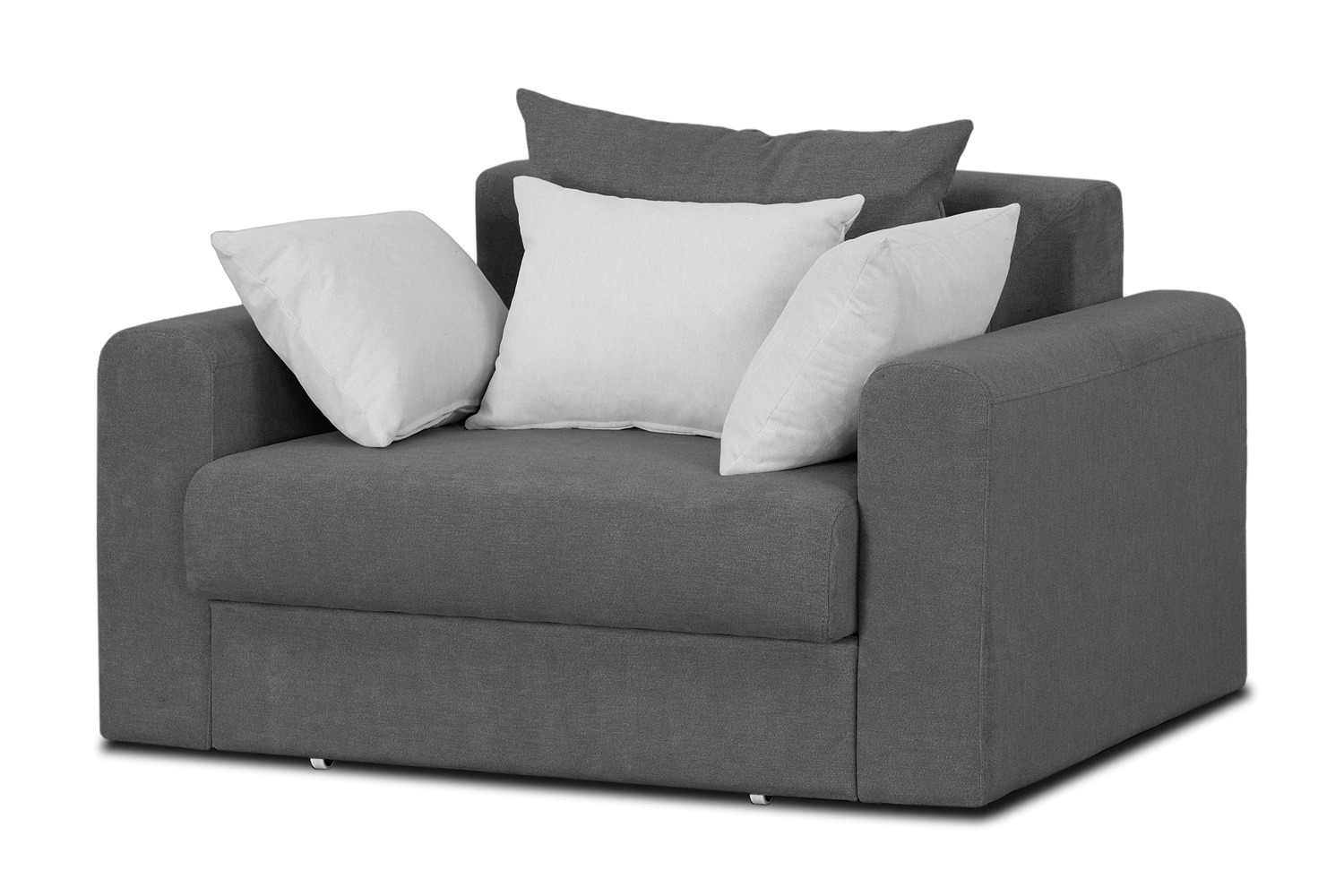 Fauteuil spacieux et confortable pour un intérieur au style moderne. Le modèle, malgré ses dimensions impressionnantes (largeur - 120 cm, profondeur - 110 cm, hauteur - 94 cm) s'intègre bien dans un salon spacieux, ainsi que dans une petite chambre d'enfant.