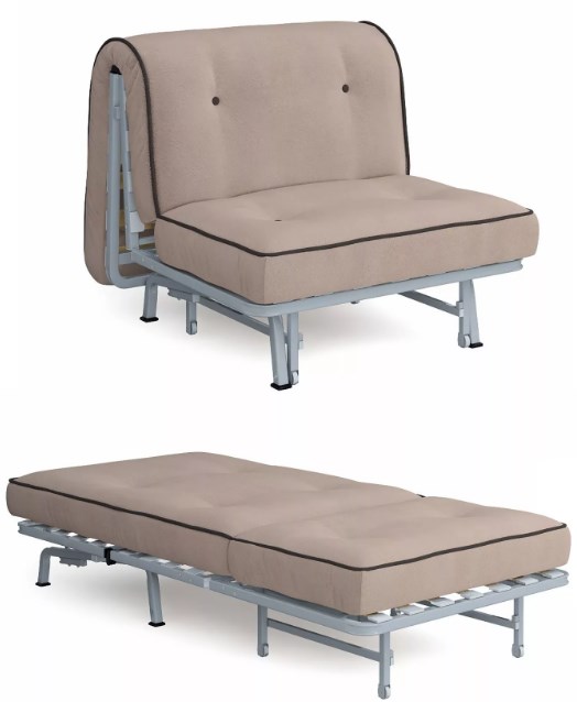 À l'aide d'un double mécanisme de pliage, ou, comme on l'appelle aussi, d'un lit pliant, un couchage de 62x199 cm tient dans une chaise compacte.Pour un usage quotidien, un tel lit est étroit, mais dans des cas extrêmes, il peut aider .