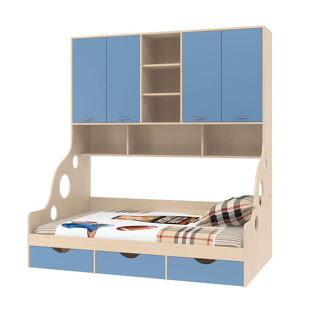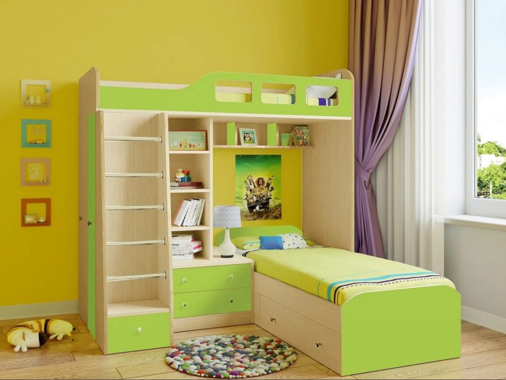 Genre de construction. Cela signifie également fonctionnalité si le cadre est en outre équipé de tiroirs, d'armoires, d'étagères ou d'une table de travail. Les zones de stockage peuvent accueillir de la literie, des fournitures d'étude, des livres, des jouets et d'autres articles. Les transformateurs les plus fonctionnels qui économisent de l'espace.