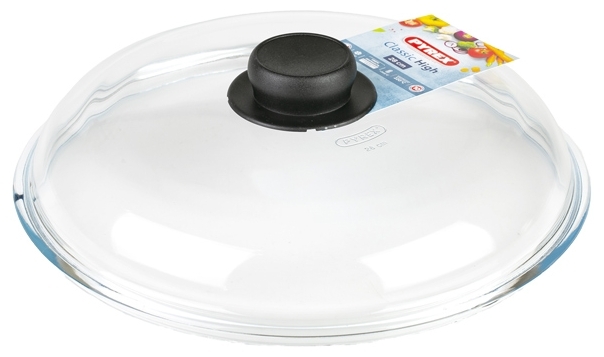 Le dispositif présenté pour conserver la chaleur à l'intérieur de la vaisselle et protéger les objets environnants de la graisse est en silicone et en verre. Les côtés et la poignée sont en silicone spécial imprimé gris marbré et il y a aussi un évent à vapeur. Dimensions - 26 cm Il n'y a pas de pièces métalliques.