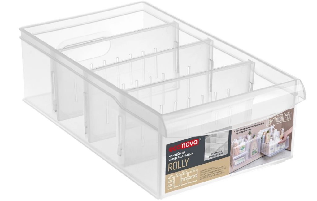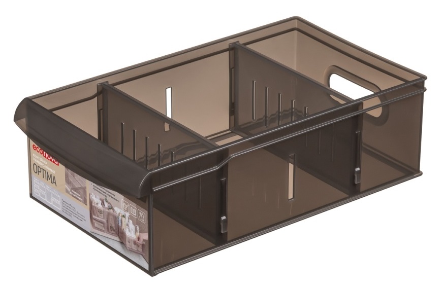 Le récipient rectangulaire en plastique est très pratique à utiliser. Convient pour ranger non seulement les ustensiles de cuisine - peut être utilisé pour les vêtements, les jouets pour enfants ou d'autres objets importants. Les cloisons internes peuvent être réarrangées ou supprimées, augmentant ainsi la taille du compartiment pour les accessoires plus grands.