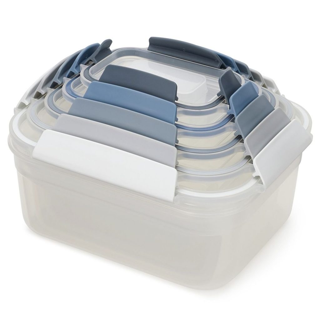 L'ensemble est pratique à ranger - les conteneurs s'emboîtent les uns dans les autres et ne prennent pratiquement pas de place dans l'armoire de cuisine. Le kit comprend 5 récipients de volumes différents : 230, 540 ml, 1.1. l, 1,85 et 3 l. Chacun d'eux a son propre objectif et contribue à la sécurité des produits.