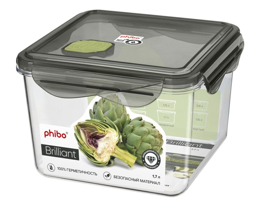 Le récipient au design élégant est un récipient transparent avec un couvercle noir. Le volume des marchandises est de 1,7 l. Le fabricant produit également un ustensile de cuisine d'apparence similaire avec un volume et une couleur différents.