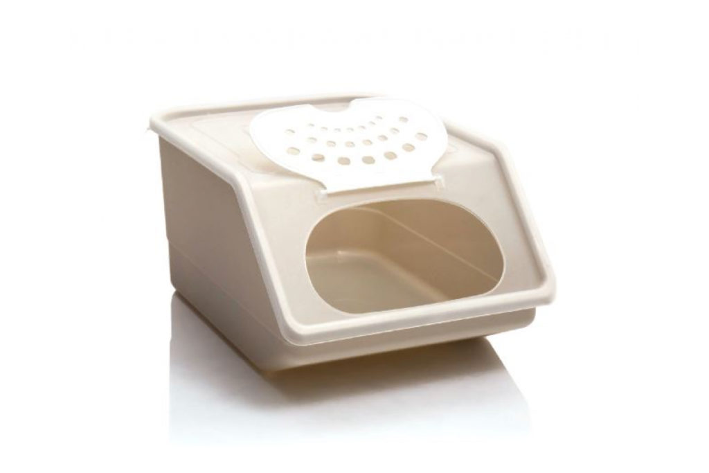 Le volume total du produit est de 11,5 litres, la longueur est de 45 cm, la largeur est de 24 cm et la hauteur est de 13 cm.Pour une plus grande facilité d'utilisation, le produit est équipé de poignées et de roues pour un transport rapide. Le récipient est en plastique de haute qualité. Disponible en deux couleurs - transparent et marron.