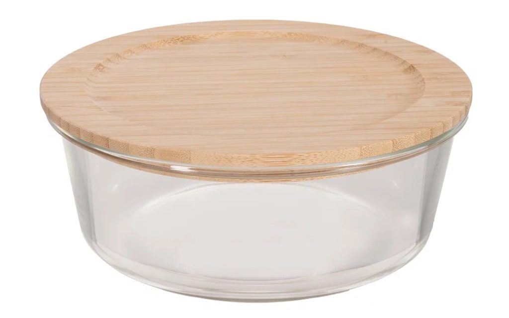Ce modèle est composé de verre borosilicaté et de bambou. Ce matériau vous permet d'utiliser le récipient pour la cuisson de plats - il peut résister à des températures allant jusqu'à 560 degrés. Vous pouvez également congeler les aliments dans un récipient et les conserver au frais.