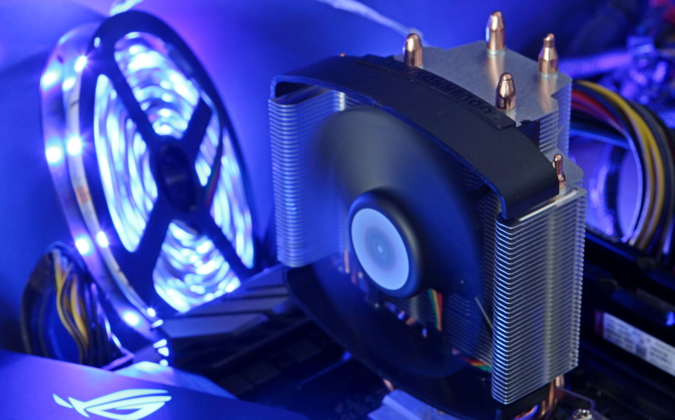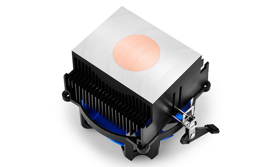 Un dispositif bas fabriqué à Taïwan pour refroidir le processeur. Des pales en forme de vague, et un radiateur à 48 ailettes en aluminium enfilées sur cinq tubes en cuivre. Pour une meilleure dissipation de la chaleur, une technologie de contact direct par pâte thermique est utilisée. La vitesse de rotation est régulée via un connecteur à 4 broches entre 500 et 1600 tr/min.