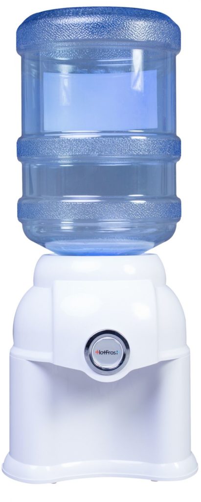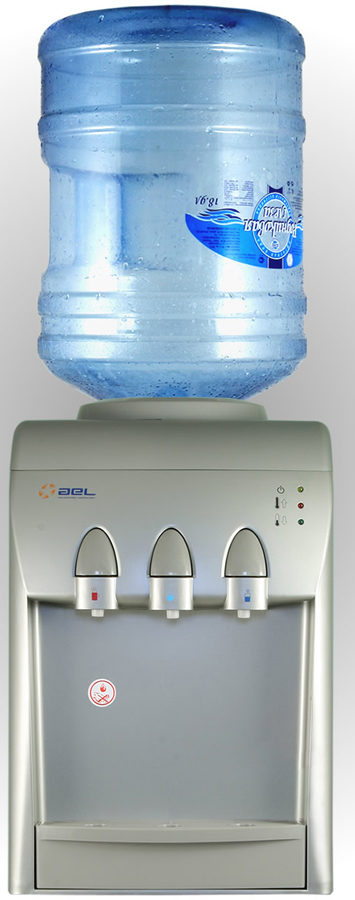 Un appareil portable dont la tâche n'est pas de chauffer et de refroidir, mais de fournir de l'eau potable à température ambiante. À cet égard, ce modèle de refroidisseur de bureau ne dépend pas du réseau électrique, il est donc bien adapté pour une installation dans un endroit éloigné de la prise.
