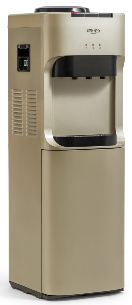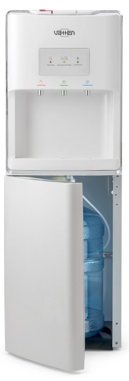 Verser. Les distributeurs sont utilisés pour verser de l'eau chaude et froide, mais certaines glacières sont équipées d'un troisième distributeur supplémentaire pour verser du liquide à température ambiante. Cela permet d'économiser les ressources du distributeur et de réduire les coûts énergétiques. Ce type de distributeur, avec trois distributeurs, est le plus populaire à la maison.