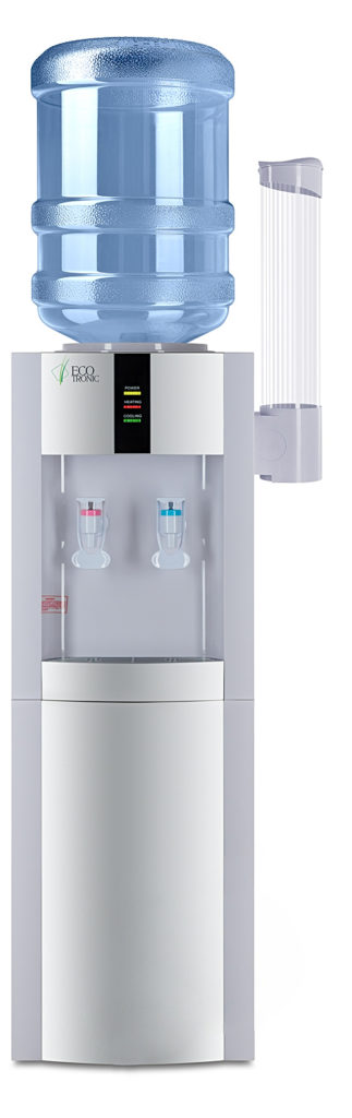 Modèle de distributeur de table avec un système de refroidissement électronique et une fonction «chauffage turbo» qui vous permet de chauffer rapidement l'eau. Cette option est activée à l'aide d'un écran tactile numérique, qui contient également des indicateurs lumineux pour la température de l'eau. Le corps de la structure est en plastique, de sorte que l'appareil est compact et léger. L'alimentation se produit en appuyant sur la tasse sur le levier du distributeur.