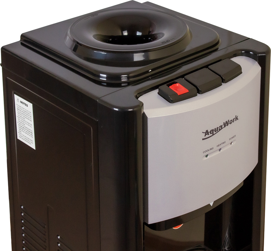Ce modèle est parfait pour le bureau. Le système de compresseur permet pendant 1 heure de chauffer 5 litres de liquide (jusqu'à +90 degrés) et de refroidir 2 litres (jusqu'à +10 degrés). L'alimentation s'effectue en appuyant sur le bouton et en le maintenant enfoncé, il y en a trois sur le panneau de commande - pour fournir de l'eau chaude, froide et légèrement réfrigérée. Les distributeurs d'eau chaude sont équipés d'une sécurité enfant.