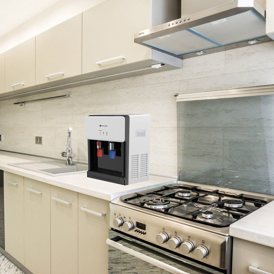 Le mode de refroidissement et de chauffage peut être désactivé et le mode d'alimentation en eau peut être laissé à température ambiante. Le panneau de commande est équipé de boutons pratiques. L'appareil est assez compact et peut être installé n'importe où au bureau ou à la maison.