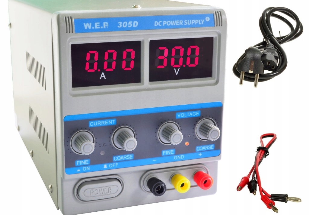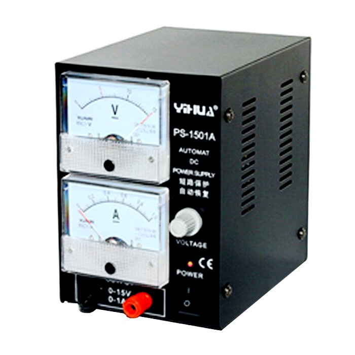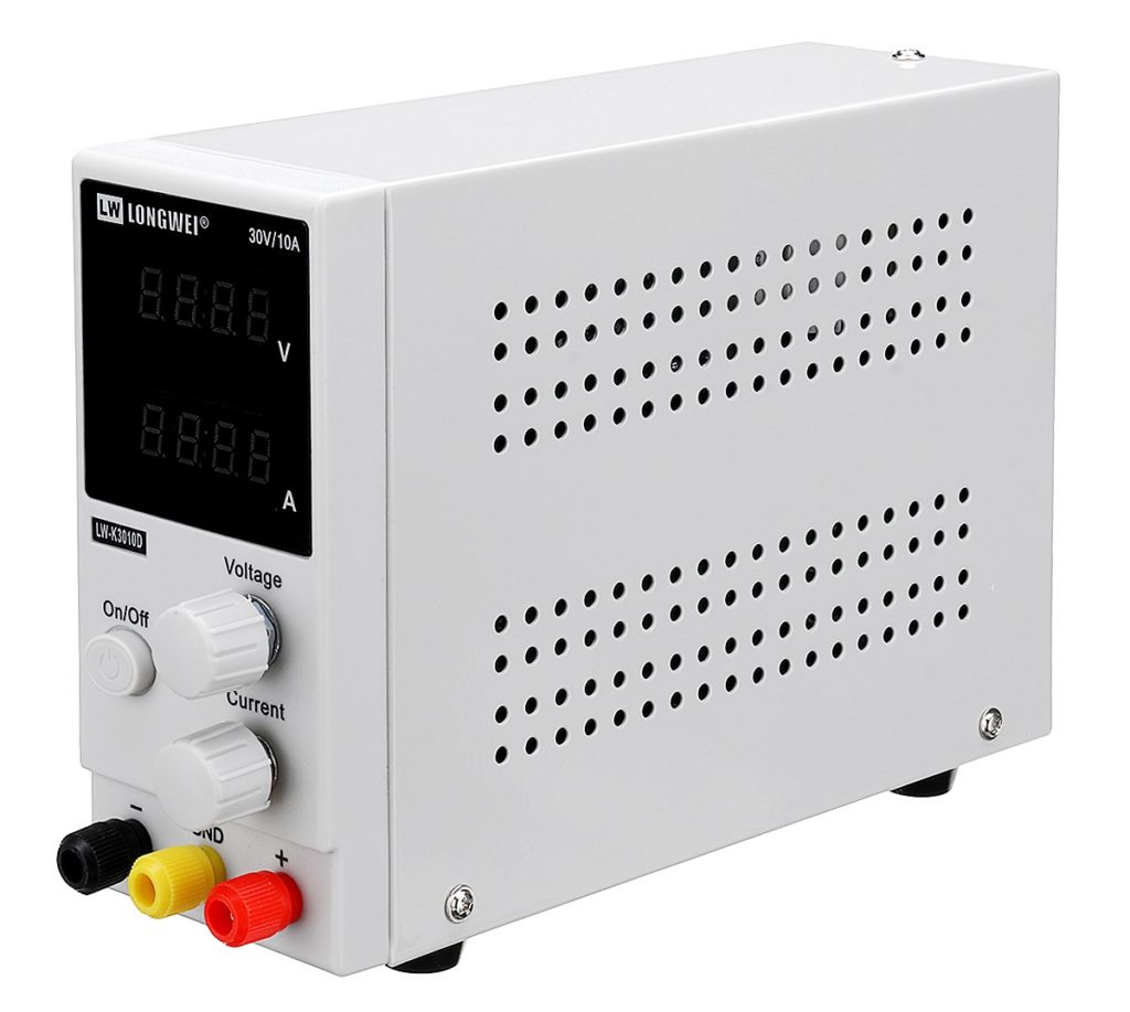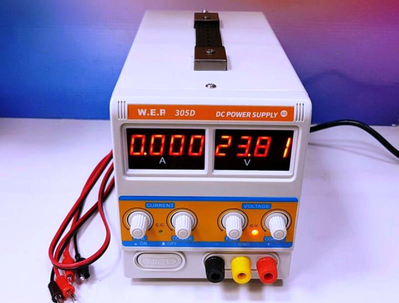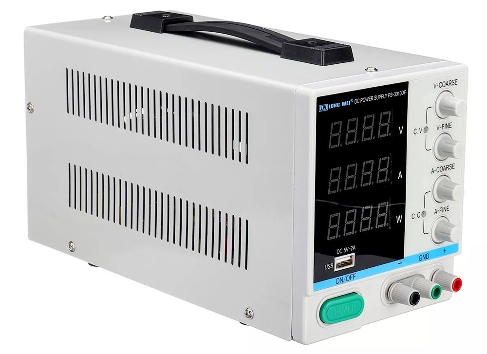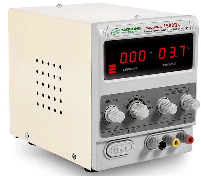 Une entreprise chinoise a lancé la production d'un appareil de haute qualité à un coût insignifiant, largement utilisé dans les centres de service pour la réparation de téléphones portables. Malgré le nom de "bloc laboratoire", il n'est pas adapté à la résolution de problèmes complexes. Appartient à la catégorie des instruments à canal unique avec une plage de tension allant jusqu'à 15 watts et de 1 à 3 ampères. Indice d'ondulation - 3 unités. L'introduction des paramètres s'effectue à l'aide de quatre résistances. La présence d'un réglage fin permet d'afficher des valeurs de quatre caractères sur le canal.