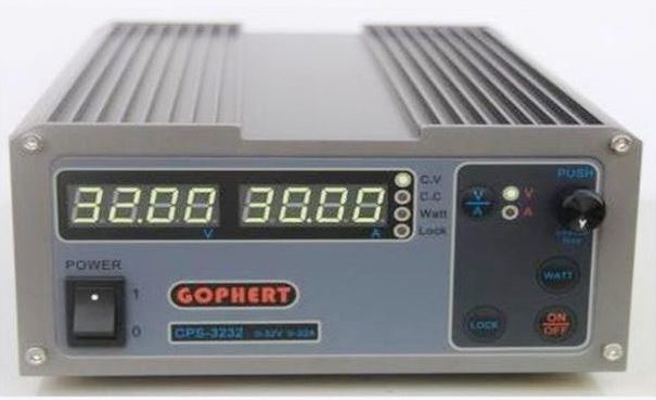 Une puissante alimentation de laboratoire à découpage avec un débit accru de 32 V, au lieu du 30 V standard. Quant au courant, ses caractéristiques sont complètement les mêmes. Possède un réglage analogique des paramètres de sortie. L'indicateur peut être réglé avec une précision de 0,1 V à l'aide d'une variable multitour. En ce qui concerne l'amplitude du courant de sortie de stabilisation, sa mise en place se fait sous une forme grossière, grâce à l'utilisation d'une grandeur classique.