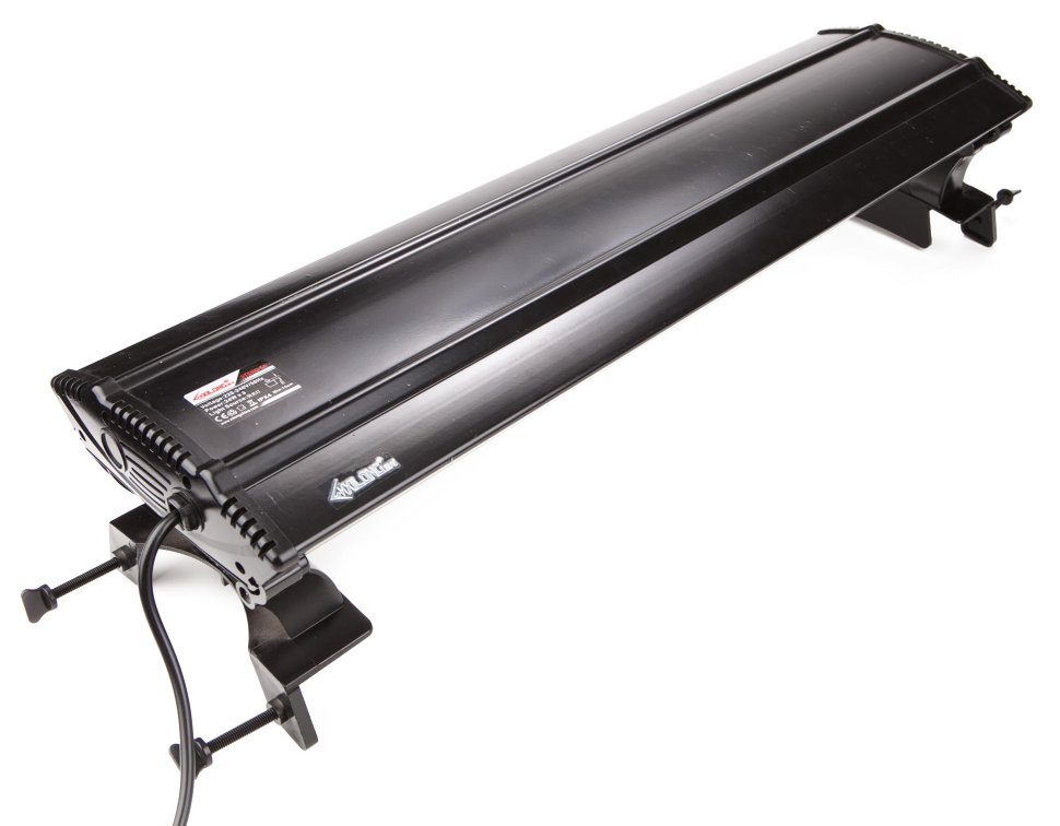 Il a des supports coulissants, ce qui lui permet d'être monté sur du verre d'une longueur de 50 à 60 cm.3 lampes dans le kit fournissent un éclairage optimal pour les aquariums d'eau douce sans couvercle. Il est possible de commuter et d'utiliser seulement 1 lampe ou deux sur les côtés. Le luminaire pivote de 90 degrés si nécessaire. Prix : 5100 roubles.