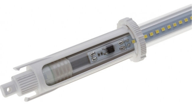Lampe à LED adaptée à l'eau douce, température de couleur 8000 K. Comprend un support et un adaptateur pour les douilles des lampes fluorescentes T8 et T5. Garantie constructeur : 120 jours. Durée de vie : 360 jours. Prix : 3948 roubles.