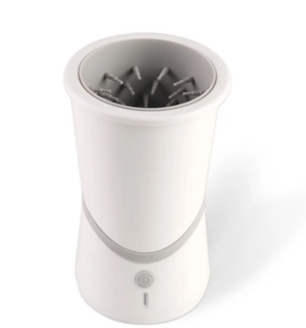 Modèle ergonomique avec une poignée à une main confortable et durable, qui abrite le bouton d'alimentation et la batterie intégrée, aide à laver les pattes des gros chiens. Ceci est facilité par un diamètre de verre de 15 cm et un insert de brosse en silicone. Il y a aussi des poils sur le dessous pour un meilleur nettoyage du bout des doigts et de la peau sous les griffes. Charge en 3 heures. Une charge complète suffit pour fonctionner pendant 8 à 10 jours.