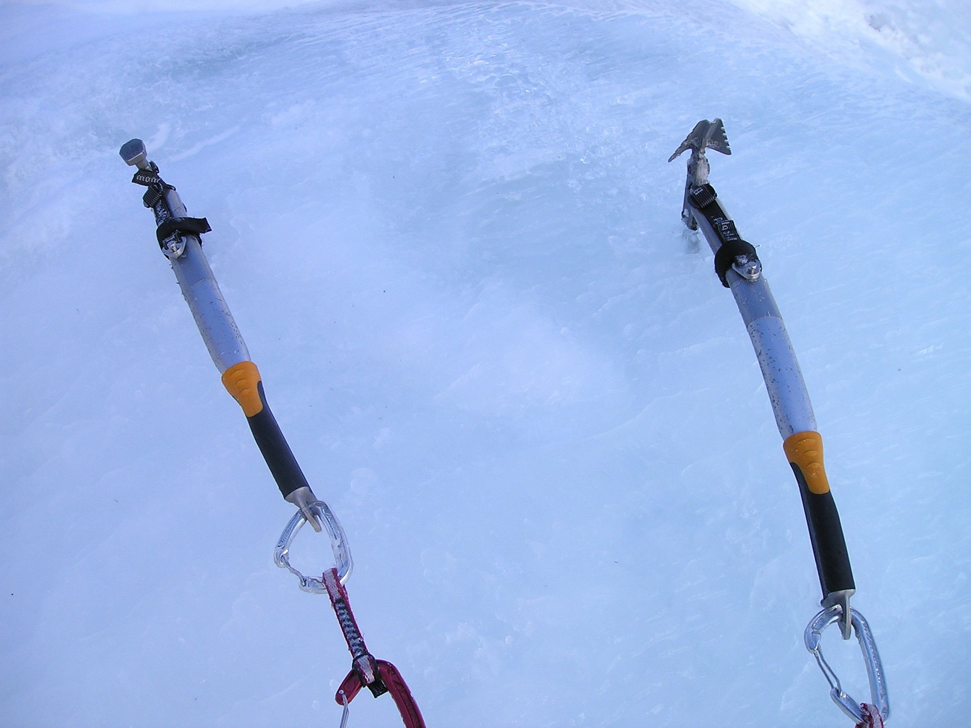Les outils courts sont indispensables dans les endroits avec une fine couche de glace. Ainsi, le piolet ne pourra pas s'appuyer contre le rocher avant le moment où il est complètement tordu.Impossible de se passer d'outils courts en cas de « conquête ! Glace solide formée en hiver. Tout en offrant une résistance suffisamment élevée, ils se vissent beaucoup plus rapidement dans la glace solide.